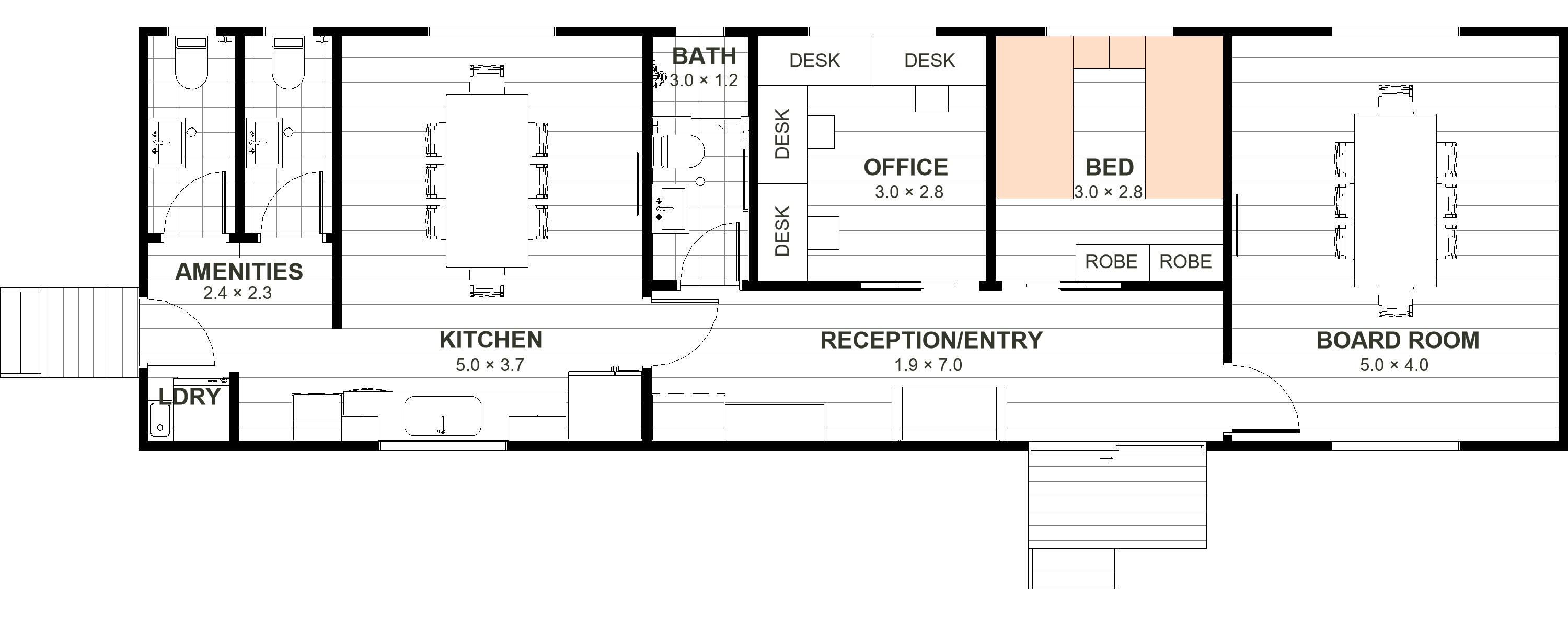 The Banksia 23 caters to field workers and office teams alike, providing versatile functionality and comfort. Featuring two offices convertible to bedrooms, a bathroom, two toilets, laundry, fully-equipped kitchen, and optional boardroom, it ensures every aspect of your workday is covered. Experience an efficient farm office hub.