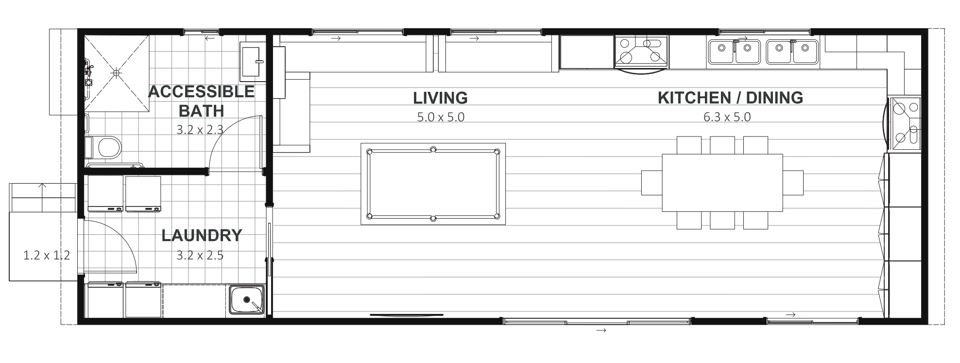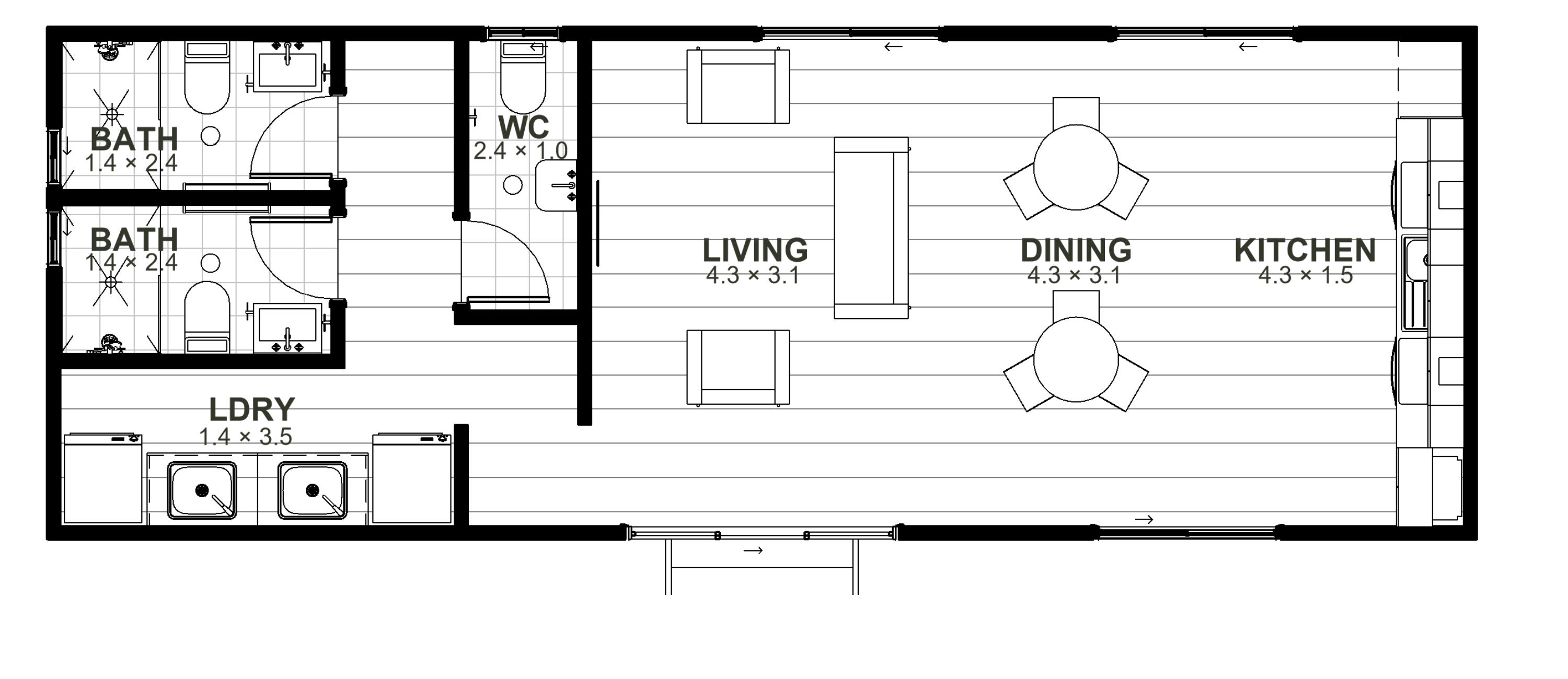 Your Ultimate Community Hub. Featuring a spacious laundry area for multitasking, two full bathrooms plus a separate WC for optimal usability, and an expansive open seating area this hub is designed to foster connections. At its core lies a fully-equipped, full-width kitchen with two cookers, two ovens, and ample sink space, inviting communal cooking experiences.